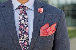 Also, consider your build. Are you broad shoulder? Try wider lapels and ties. If you’re described as slim and small in stature, opt for a slimmer men’s tie and lapel.