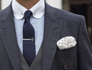 Tie straps keep your tie from going wild in the wind. Afraid it will fall over in your soup? Try a tie clip or chain. Knot looking flat? Use a collar pin to push it slightly forward for an extra pop.